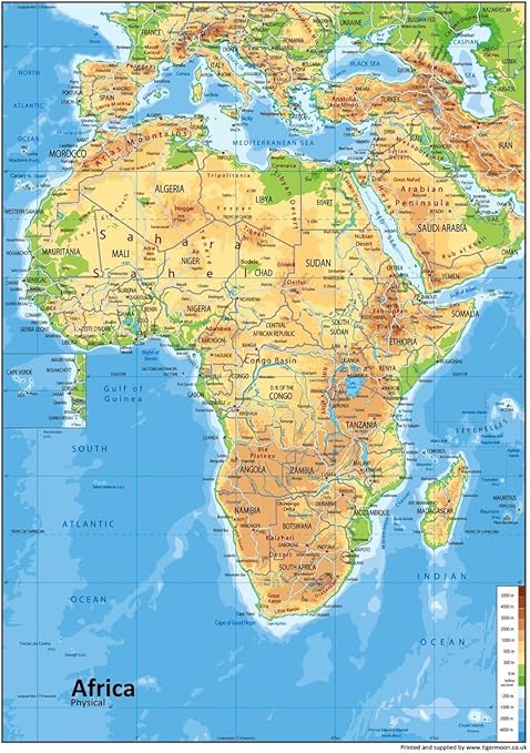 This is a physical map of africa which shows the continent in shaded relief. 333152 bytes (325.34 kb), map dimensions: World map of mediterranean region: How would you describe the physical landscape of africa? Kilimanjaro chad basin congo basin kalahari desert madeira seychelles islands cape verde islands canary islands s a h a r a d e s e r t.